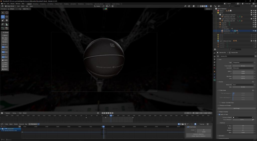 Das Schnittbild zeigte einen rotierenden Basketball mit Slogan eingebettet in ein digital inszeniertes Stadion. Da sich Flugbahn, Rotation und Perspektive kameratechnisch nur schwer kontrollieren lassen, wurde die Szene vollständig in 3D umgesetzt.